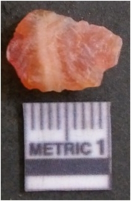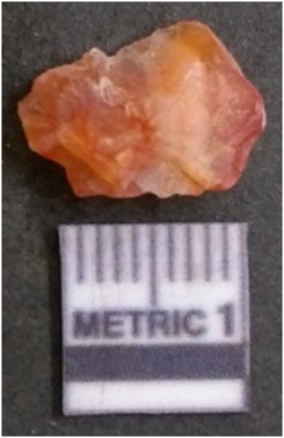 | Description / विवरण | It is chalcedony flake, translucent in appearance. The piece shows sharp pointed ends and flake scars on the surface as a result of flaking. The piece shows a bulb of percussion. |
