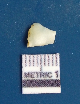 | Description / विवरण | The quartz flake has sharp flaked edges and pointed ends as a result of flaking. The piece is semi-transparent in nature with irregular fracture pattern. The piece is roughly triangular in shape and has a prominent bulb of percussion. |