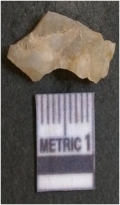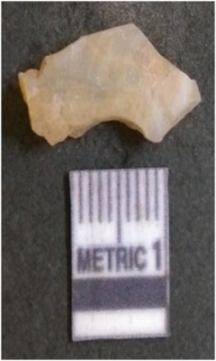 | Description / विवरण | It is chalcedony flake, translucent in appearance. The piece shows sharp pointed ends and flake scars on the surface as a result of flaking. The piece shows a bulb of percussion. |