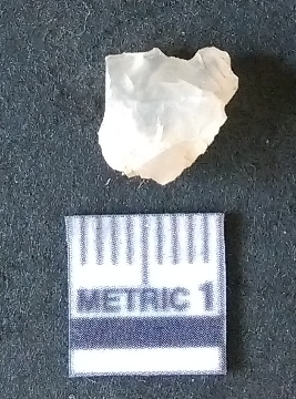 | Description / विवरण | The quartz piece is flat, with flaked edges. The flake is white in colour and has a positive bulb of percussion. |