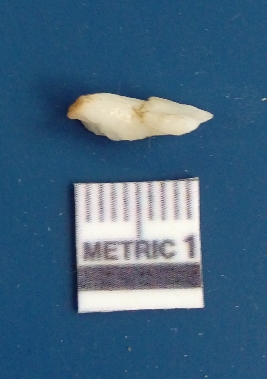 | Description / विवरण | The quartz flake has sharp flaked edges and pointed ends as a result of flaking. The piece is semi-transparent in nature with irregular fracture pattern. The piece is roughly triangular in shape and has a prominent bulb of percussion. |