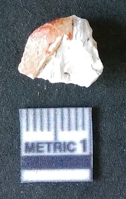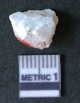 | Description / विवरण | The quartz piece is white in colour, semi-transparent, and with an uneven fracture pattern. The piece has prominent bulb of percussion and points at lithic knapping activity. |
