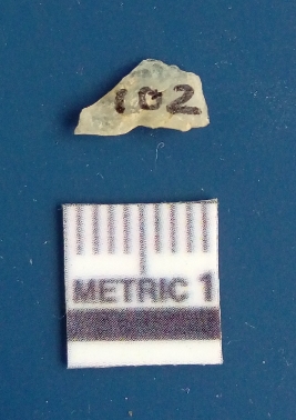 | Description / विवरण | The quartz flake has sharp flaked edges and pointed ends as a result of flaking. The piece is semi-transparent in nature with irregular fracture pattern. The piece is roughly triangular in shape and has a prominent bulb of percussion. |