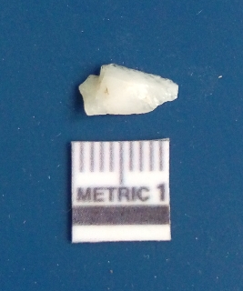 | Description / विवरण | The quartz flake has sharp flaked edges and pointed ends as a result of flaking. The piece is semi-transparent in nature with irregular fracture pattern. The piece is roughly triangular in shape and has a prominent bulb of percussion. |