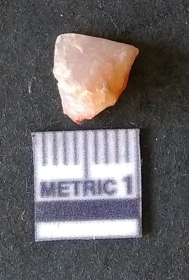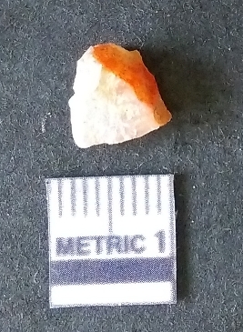 | Description / विवरण | The chalcedony piece is small, with yellowish coloration and flaked edges. The piece has rounded edges and has a prominent bulb of percussion as a result of flaking activity. |