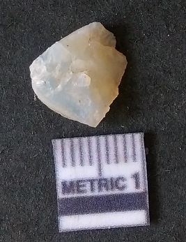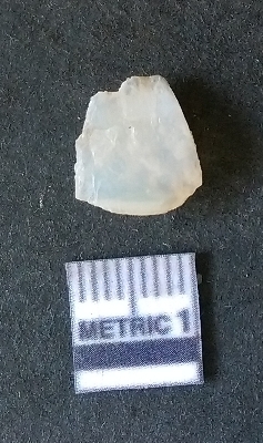 | Description / विवरण | The quartz flake has sharp flaked edges and translucent appearance. The piece is crypto-crystalline in nature with uneven fracture pattern. |