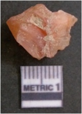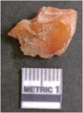 | Description / विवरण | It is chalcedony flake, translucent in appearance. The piece shows sharp pointed ends and flake scars on the surface as a result of flaking. The piece shows a bulb of percussion. |