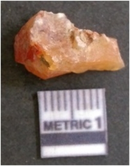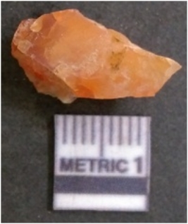 | Description / विवरण | It is chalcedony flake, translucent in appearance. The piece shows sharp pointed ends and flake scars on the surface as a result of flaking. The piece shows a bulb of percussion. |