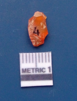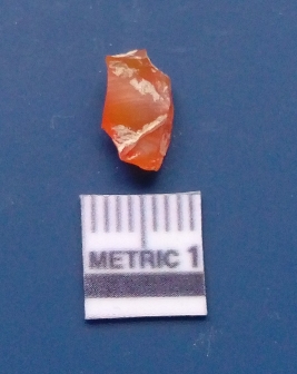 | Description / विवरण | It is carnelian flake red in color, with sharp flakes edges and a small bulb of percussion owing to knapping activity. The piece has sharp flaked edges and a crypto-crystalline matrix. |