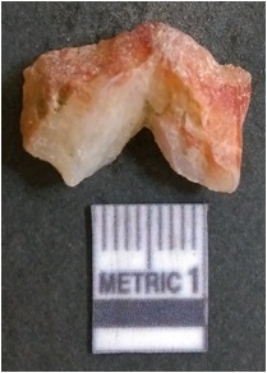 | Description / विवरण | The quartz flake has sharp flaked edges and pointed ends as a result of flaking. The piece is semi-transparent in nature with irregular fracture pattern. The piece is roughly triangular in shape and has a prominent bulb of percussion. |