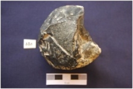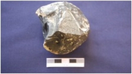 | Description / विवरण | A core with flake scars, made on Chert. |
