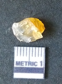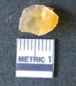 | Description / विवरण | The chalcedony piece is translucent in nature, with sharp flaked edges and flake scars on the surface. The piece is pale in colour, with sharp ends as a result of flaking. |