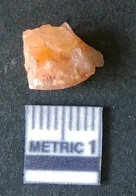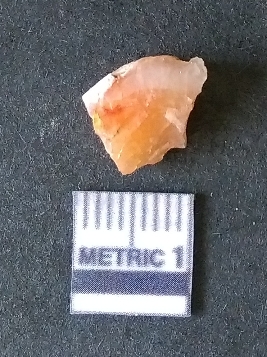 | Description / विवरण | The chalcedony piece is translucent in nature, with sharp flaked edges and flake scars on the surface. The piece is pale in colour, with sharp ends as a result of flaking. |