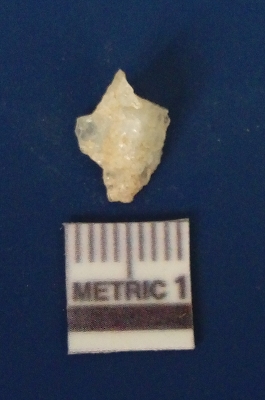 | Description / विवरण | The quartz flake has sharp flaked edges and pointed ends as a result of flaking. The piece is semi-transparent in nature with irregular fracture pattern. The piece is roughly triangular in shape and has a prominent bulb of percussion. |