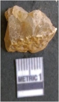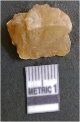 | Description / विवरण | It is chalcedony flake, translucent in appearance. The piece shows sharp pointed ends and flake scars on the surface as a result of flaking. The piece shows a bulb of percussion. |