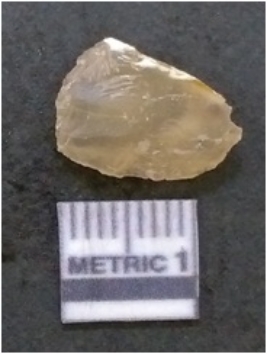 | Description / विवरण | It is chalcedony flake, translucent in appearance. The piece shows sharp pointed ends and flake scars on the surface as a result of flaking. The piece shows a bulb of percussion. |