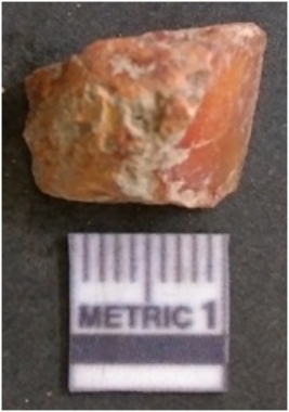 | Description / विवरण | It is chalcedony flake, translucent in appearance. The piece shows sharp pointed ends and flake scars on the surface as a result of flaking. The piece shows a bulb of percussion. |