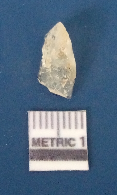 | Description / विवरण | The quartz flake has sharp flaked edges and pointed ends as a result of flaking. The piece is semi-transparent in nature with irregular fracture pattern. The piece is roughly triangular in shape and has a prominent bulb of percussion. |