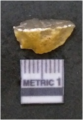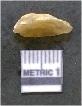 | Description / विवरण | It is chalcedony flake, translucent in appearance. The piece shows sharp pointed ends and flake scars on the surface as a result of flaking. The piece shows a bulb of percussion. |
