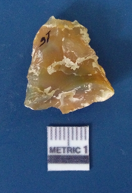 | Description / विवरण | It is chalcedony flake, translucent in appearance. The piece shows sharp pointed ends and flake scars on the surface as a result of flaking. The piece shows a bulb of percussion. |