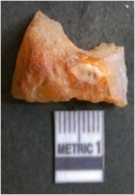| Description / विवरण | It is chalcedony flake, translucent in appearance. The piece shows sharp pointed ends and flake scars on the surface as a result of flaking. The piece shows a bulb of percussion. |