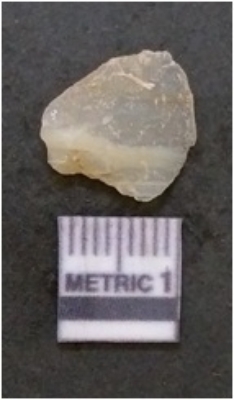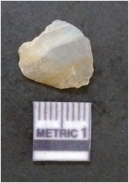 | Description / विवरण | It is chalcedony flake, translucent in appearance. The piece shows sharp pointed ends and flake scars on the surface as a result of flaking. The piece shows a bulb of percussion. |