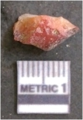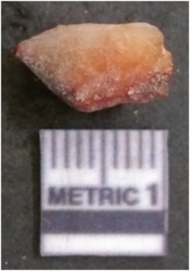 | Description / विवरण | It is chalcedony flake, translucent in appearance. The piece shows sharp pointed ends and flake scars on the surface as a result of flaking. The piece shows a bulb of percussion. |