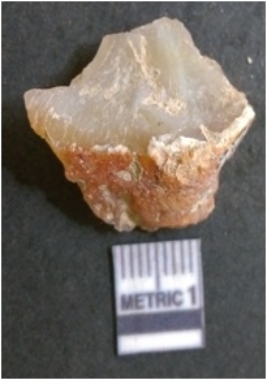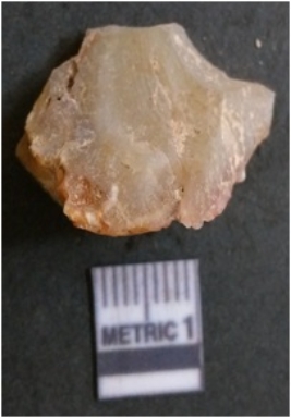 | Description / विवरण | It is chalcedony flake, translucent in appearance. The piece shows sharp pointed ends and flake scars on the surface as a result of flaking. The piece shows a bulb of percussion. |