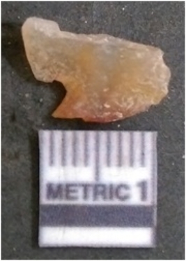 | Description / विवरण | It is chalcedony flake, translucent in appearance. The piece shows sharp pointed ends and flake scars on the surface as a result of flaking. The piece shows a bulb of percussion. |