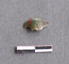 | Description / विवरण | It is a jasper fragment, with a striking platform, cortex on one end; there are many flake scars with ripples on it. |
