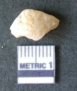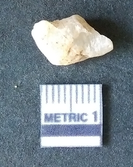 | Description / विवरण | The milky quartz piece is long, with rough cylindrical profile and flaked edges. The piece is white incolour, and has flake scars on the surface. |