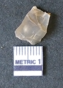 | Description / विवरण | The chalcedony piece is translucent in nature, with sharp flaked edges and flake scars on the surface. The piece is pale in colour, with sharp ends as a result of flaking. |