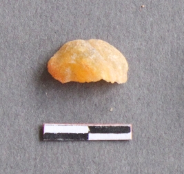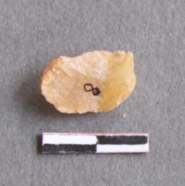 | Description / विवरण | It is a chalcedony fragment, with a striking platform, cortex on one end; there are many flake scars with ripples on it. |