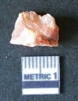 | Description / विवरण | The carnelian piece is red in colour, with crypto-crystalline matrix and flake scars on the surface due to flaking. The piece is a part of lithic knapping lithic manufacture and a part of secondary flaking. |