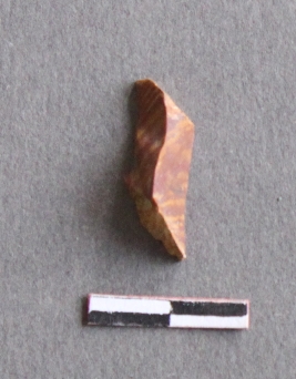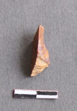 | Description / विवरण | It is a chert fragment. Triangular in shape. Flakes scar on the surface with ripples on it. |