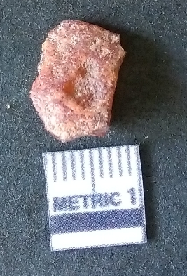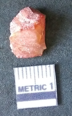 | Description / विवरण | The carnelian piece is red in colour, with crypto-crystalline matrix and flake scars on the surface due to flaking. The piece is a part of lithic knapping lithic manufacture and a part of secondary flaking. |