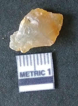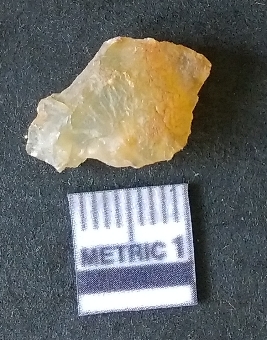 | Description / विवरण | The chalcedony piece is translucent in nature, with sharp flaked edges and flake scars on the surface. The piece is pale in colour, with sharp ends as a result of flaking. |
