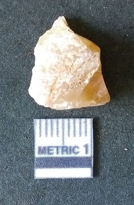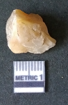 | Description / विवरण | The chalcedony piece is translucent in nature, with sharp flaked edges and flake scars on the surface. The piece is pale in colour, with sharp ends as a result of flaking. |