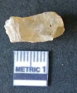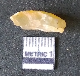 | Description / विवरण | The chalcedony piece is translucent in nature, with sharp flaked edges and flake scars on the surface. The piece is pale in colour, with sharp ends as a result of flaking. |