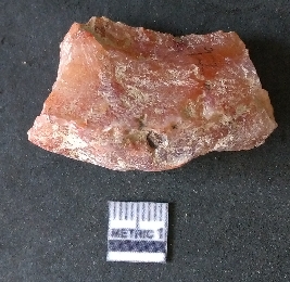 | Description / विवरण | The rosy quartz piece is roughly rectangular in shape, with flake scars on the surface. The piece has sharp cut edges and flake scars on the surface as a result of flaking. |