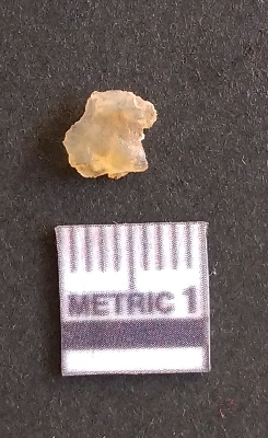 | Description / विवरण | The quartz fragment shows prominent flaks scars and sharp flaked ends as a result of flaking. The piece is translucent white and shows cryptocrystalline matrix. |