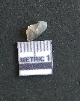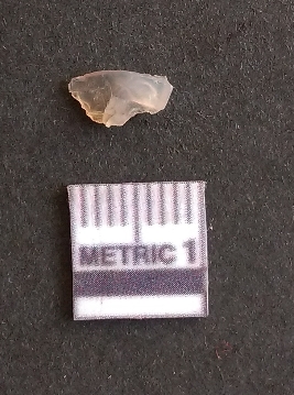 | Description / विवरण | The quartz fragment shows prominent flaks scars and sharp flaked ends as a result of flaking. The piece is translucent white and shows cryptocrystalline matrix. |