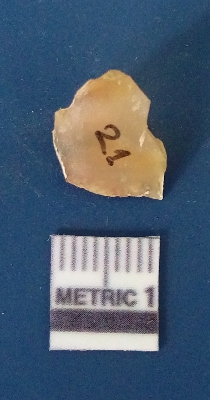 | Description / विवरण | It is chalcedony flake, translucent in appearance. The piece shows sharp pointed ends and flake scars on the surface as a result of flaking. The piece shows a bulb of percussion. |