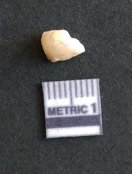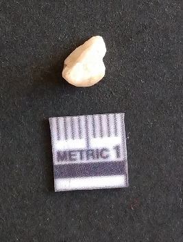 | Description / विवरण | The quartz fragment shows prominent flaks scars and sharp flaked ends as a result of flaking. The piece is translucent white and shows cryptocrystalline matrix. |