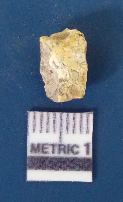 | Description / विवरण | It is chalcedony flake, translucent in appearance. The piece shows sharp pointed ends and flake scars on the surface as a result of flaking. The piece shows a bulb of percussion. |
