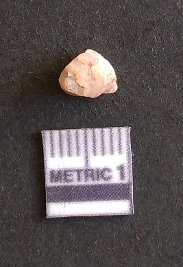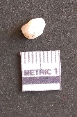 | Description / विवरण | The quartz fragment shows prominent flaks scars and sharp flaked ends as a result of flaking. The piece is translucent white and shows cryptocrystalline matrix. |