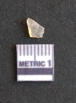 | Description / विवरण | The quartz fragment shows prominent flaks scars and sharp flaked ends as a result of flaking. The piece is translucent white and shows cryptocrystalline matrix. |