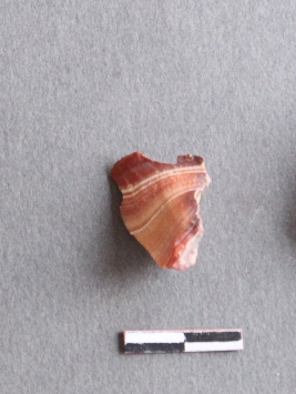 | Description / विवरण | It is an agate fragment, with a striking platform, cortex on one end; there are many flake scars with ripples on it. |