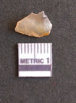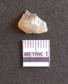 | Description / विवरण | The quartz fragment shows prominent flaks scars and sharp flaked ends as a result of flaking. The piece is translucent white and shows cryptocrystalline matrix. |