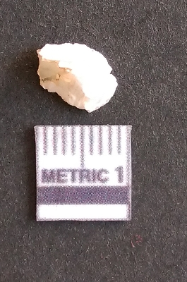 | Description / विवरण | The quartz fragment shows prominent flaks scars and sharp flaked ends as a result of flaking. The piece is translucent white and shows cryptocrystalline matrix. |
